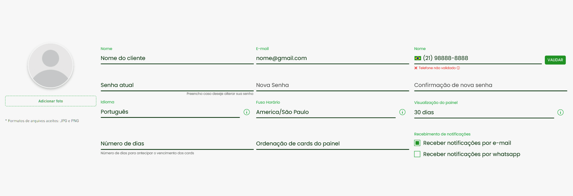 Validação de telefone
