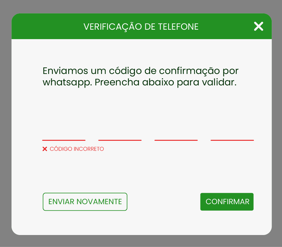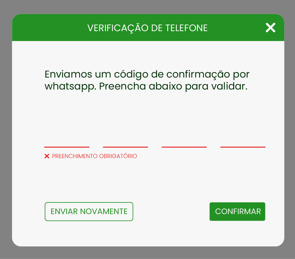 A Rupee passou a pedir validação de telefone para implementar uma nova função que precisaria do número correto e atualizado. Não existia essa funcionalidade, então criei telas para os possíveis cenários que o cliente poderia encontrar.